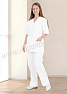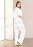 Костюм состоит из куртки и брюк. Куртка прямого силуэта с V-образным вырезом горловины, обработанной планками. На передней полочке расположены один нагрудный и два нижних накладных кармана. Горловина спинки обработана обтачкой. Рукав короткий, втачной. Брюки прямые, свободного облегания, с поясом на резинке. Для сборки костюма используются нитки в цвет ткани.