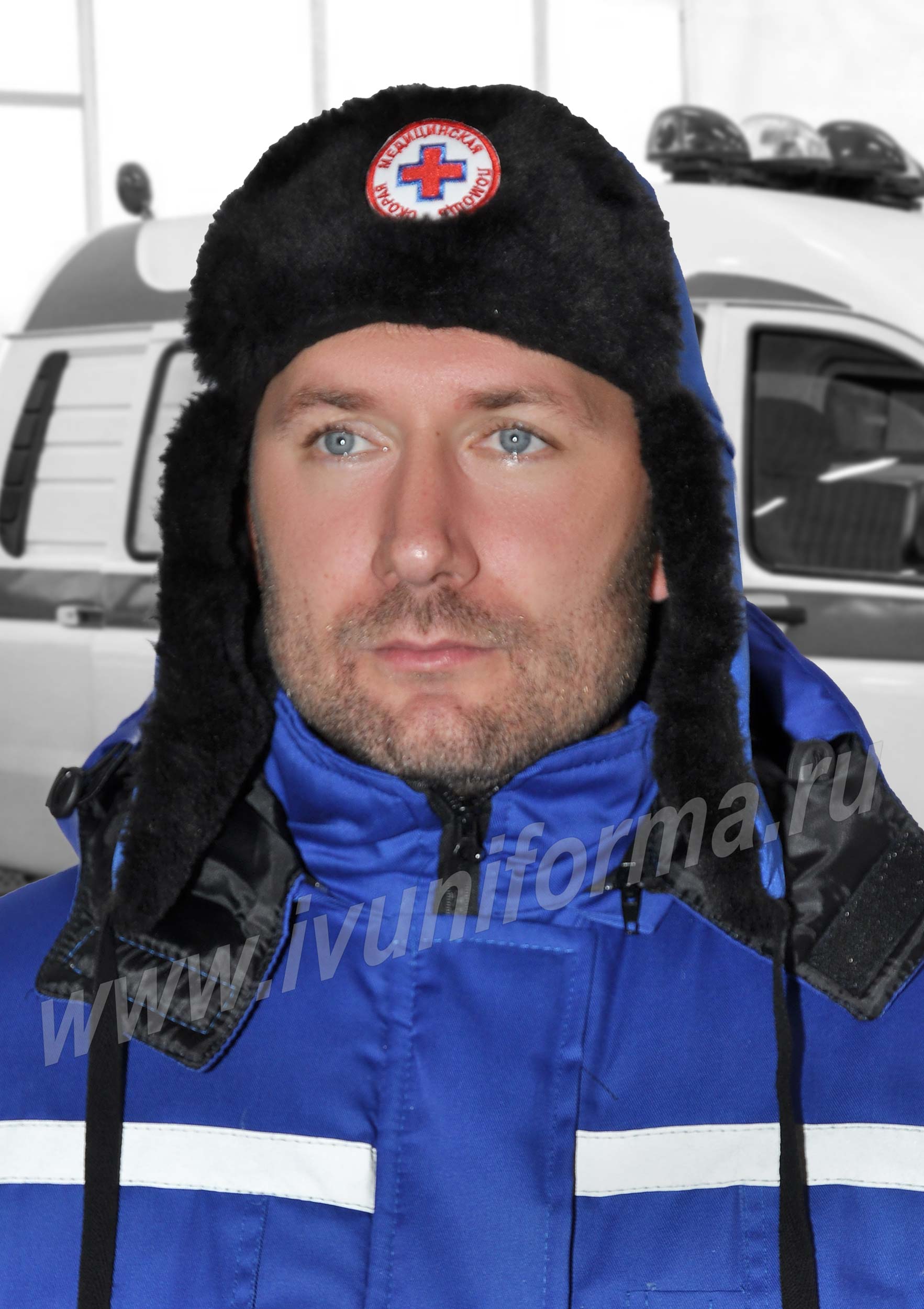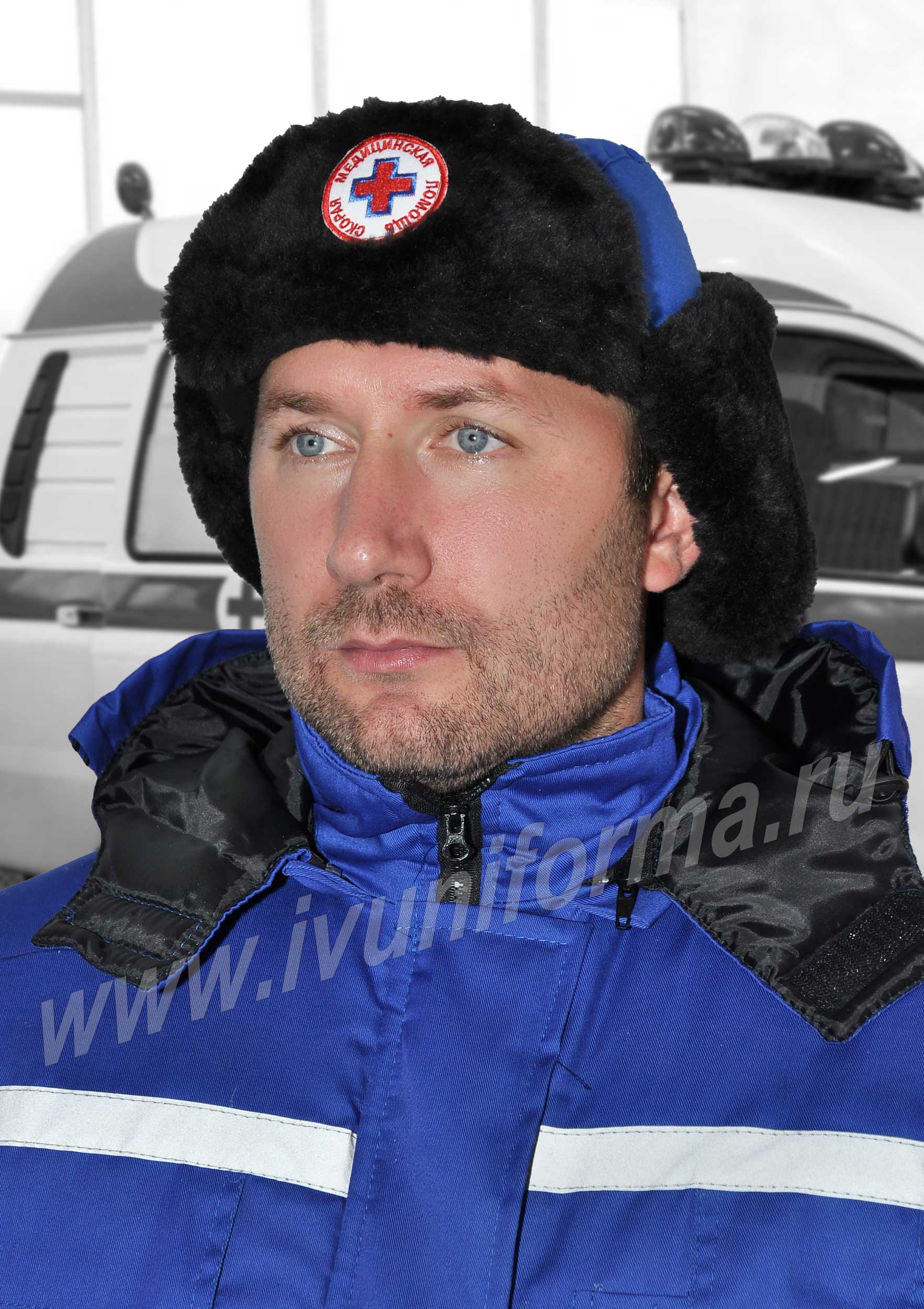 Шапка с шевроном для работников скорой помощи изготовлена в форме классической шапки-ушанки. Шапка применяется для защиты головы от общего загрязнения, механического воздействия, а также защиты от низких температур. Широко используется как дополнительный аксессуар в сфере медицины.