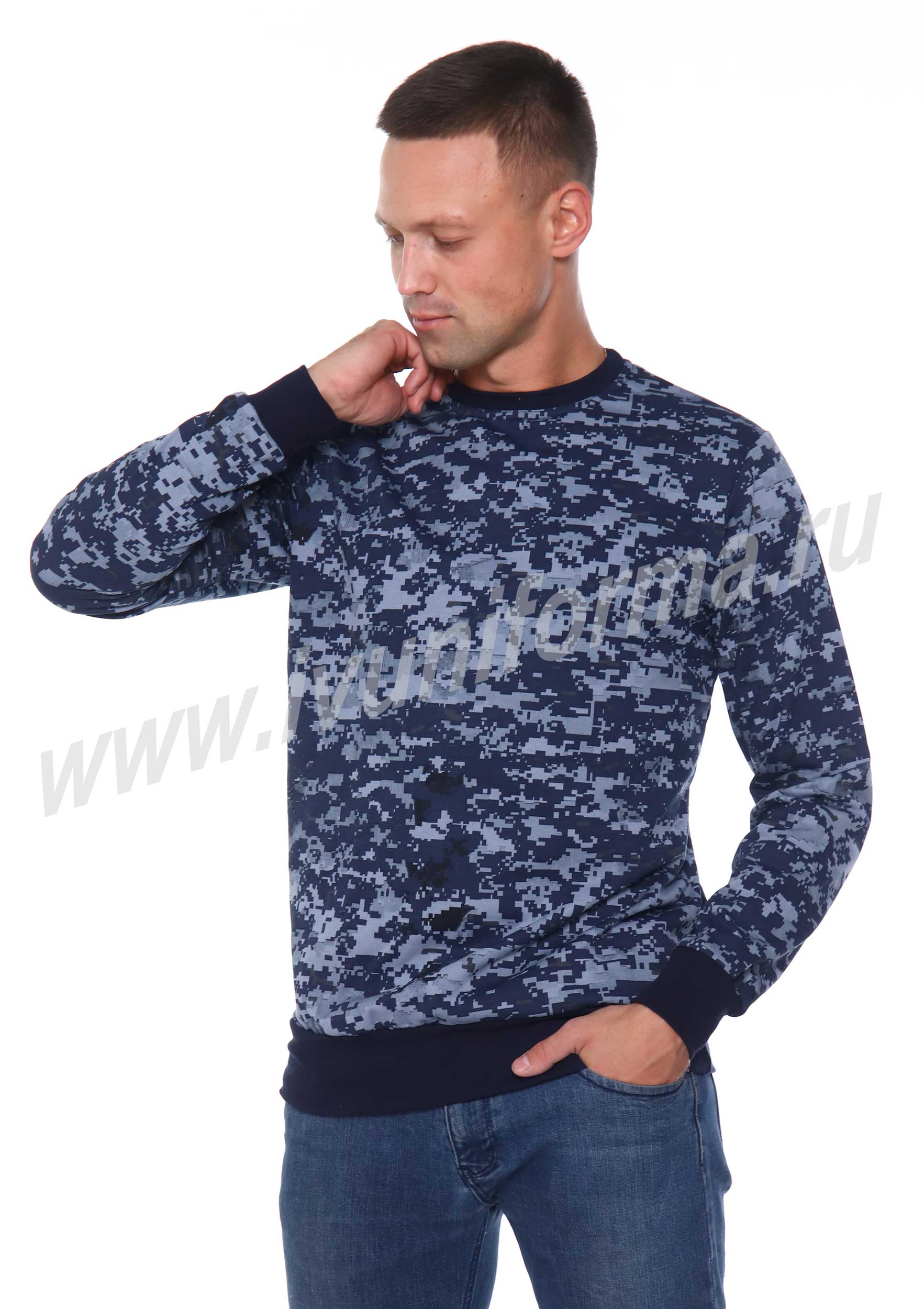 Свитшот мужской трикотажный, горловина изделия, манжеты и пояс выполнены из эластичного материала - рибана с лайкрой. Свитшот изготовлен из облегченного футера 2-нитки, плотностью 180 г/м2. Прекрасный вариант для охоты и рыбалки.