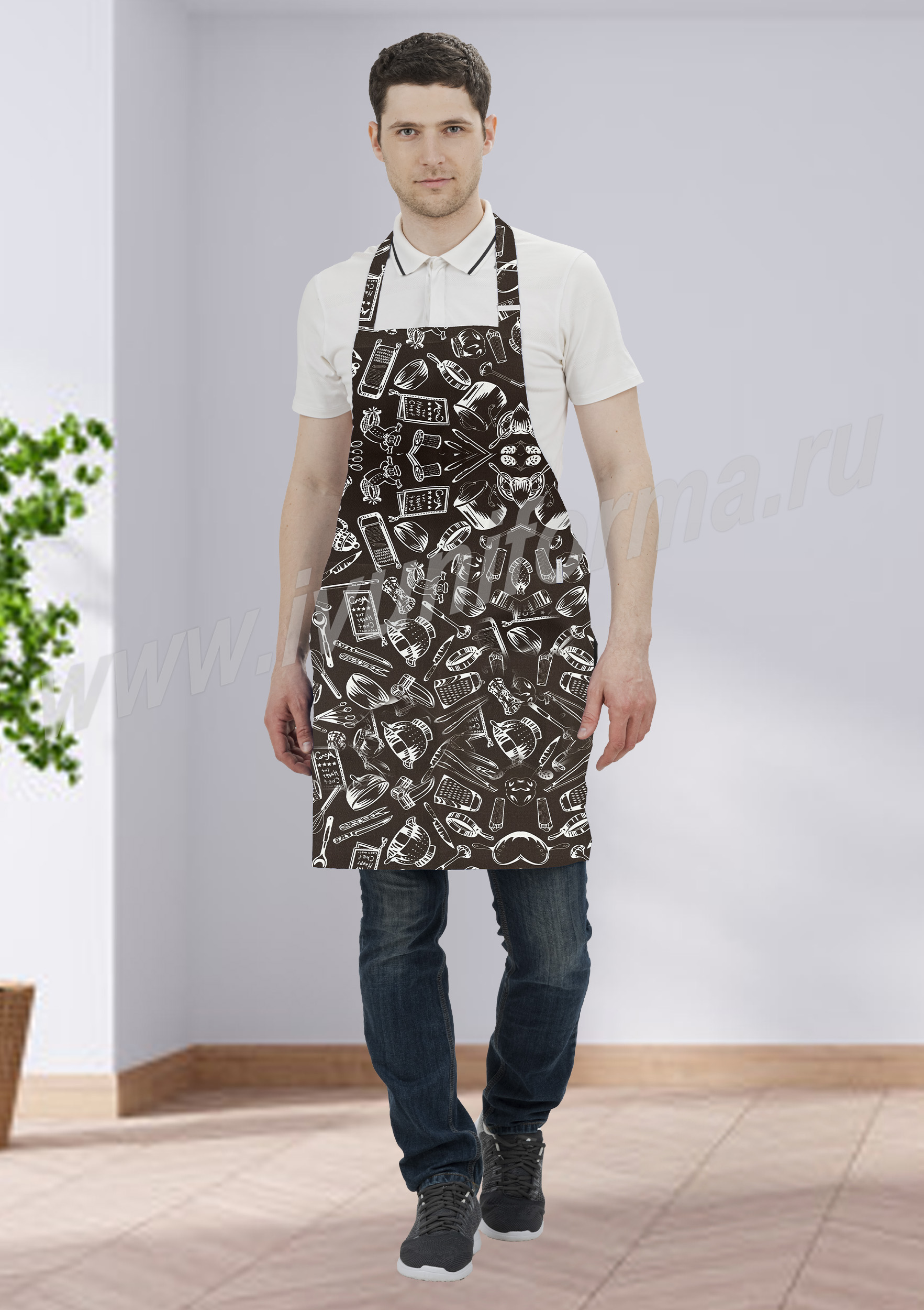 Фартук мужской средней длины, с передним карманом, разделённым строчкой на две части. Удобная шейная бретель имеет регулировку по длине. Широкие пояса плотно фиксируют фартук на талии. Водоотталкивающая пропитка позволяет защитить одежду от общий производственных загрязнений. Фартук может использоваться в составе защитного комплекса или является частью корпоративной формы.