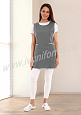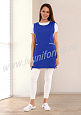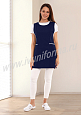 Фартук средней длины, перекидной. Спинка без отделки. Полочка с округлым вырезом горловины и рельефами, выходящими из плечевых швов, с двумя накладными вместительными карманами в нижней части фартука. Объем фартука по линии талии регулируется завязками – поясами. Изделие изготовлено из легкой и прочной смесовой ткани, с водоотталкивающей пропиткой, что придает фартуку универсальность при использовании его для защиты от общепроизводственных загрязнений в разных сферах деятельности.